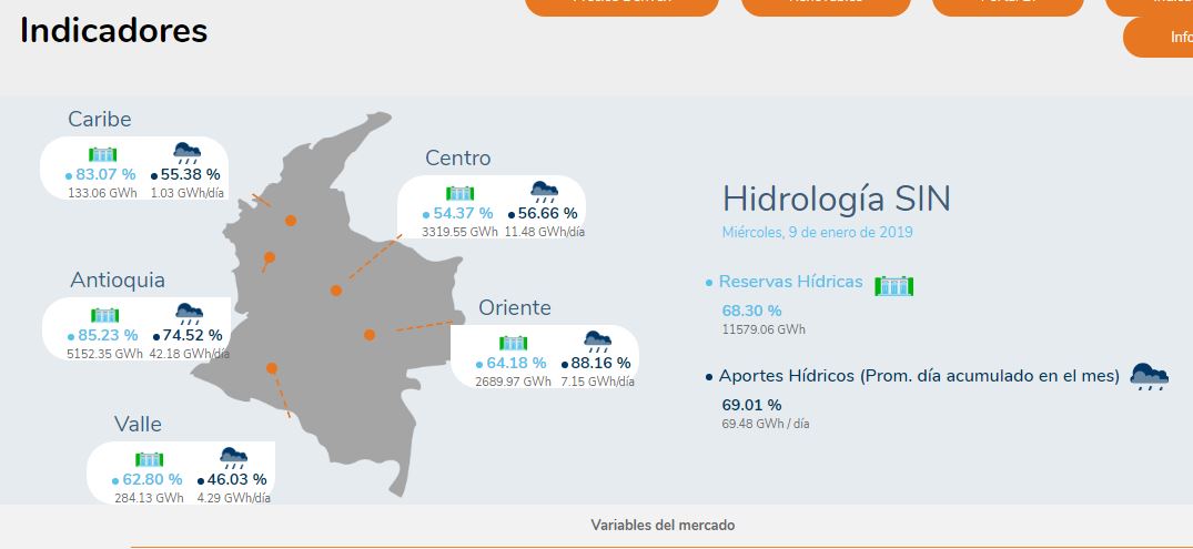 Al analizar las cifras del nivel de embalse en comparación con el 7 de enero de 2018, el directivo señaló que en ese momento la capacidad estaba en 64,8%. Es decir que hoy, un año después, el nivel es mayor. Esto debido a los altos aportes hídricos recibidos durante el año 2018 y el uso dado a los embalses en el transcurso del año pasado.