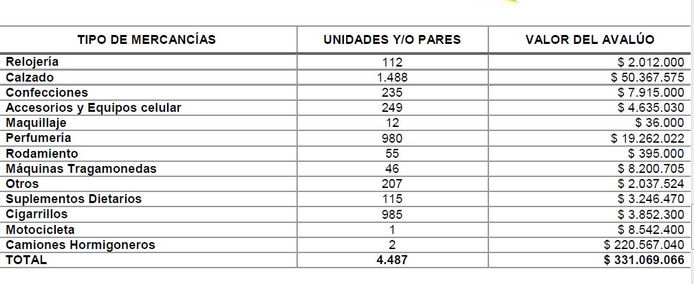 Añadió que “quien no acreditan documentos, entonces nosotros como DIAN hacemos el procedimiento siguiente que es la aprehensión y la definición de la situación jurídica de esas mercancías de aquellos que no pongan a disposición los documentos que acrediten su legal introducción al país. Estas mercancías quedan a disposición de la Nación para los diferentes procesos de donación y comercialización que hace la entidad”.