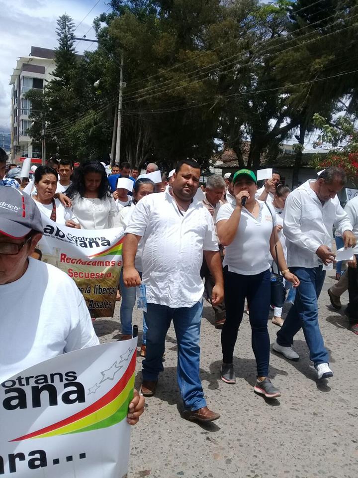 Con arengas y pancartas, conductores del gremio transportador en el Huila, marcharon por las principales calles de Pitalito, exigiendo liberación inmediata del empresario Isauro Rosales Bravo, secuestrado por desconocidos, el pasado martes santo en carreteras del departamento del Cauca.