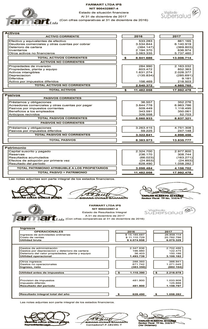 Estados financieros Farmart Ltda IPS.