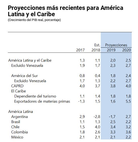 De acuerdo con la organización, América Latina crecerá 2% en 2019 y 2,5% en 2020.