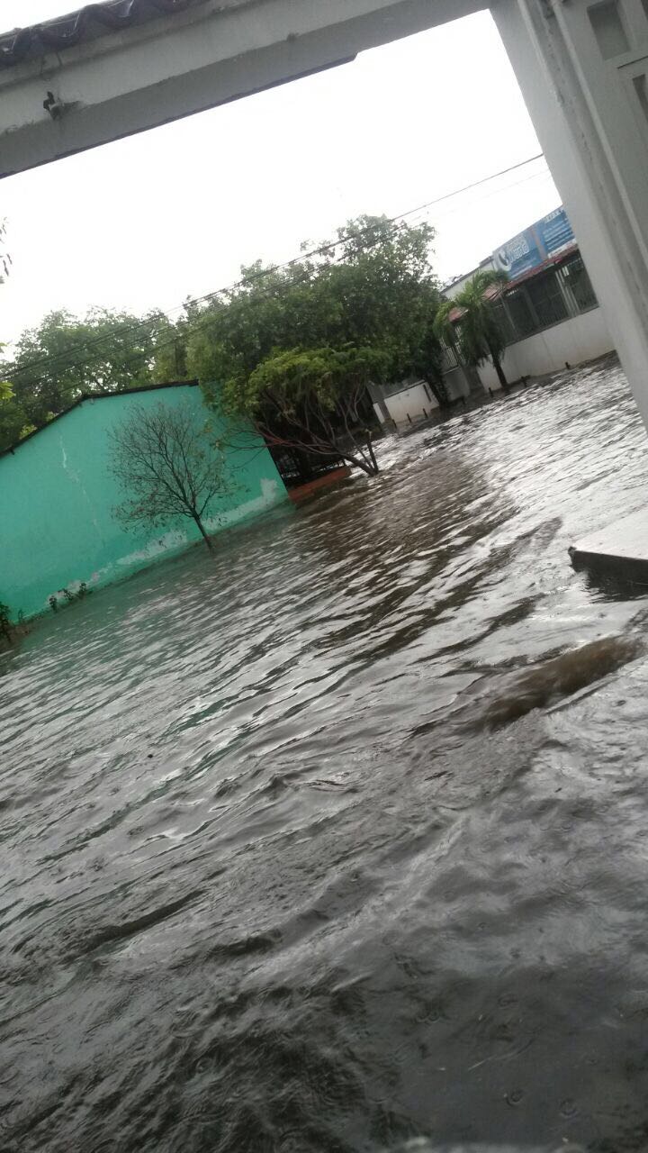 Las imágenes que fueron tomadas en la carrera sexta con calle 43 del barrio Las Granjas. La red de alcantarillado colapsó y provocó la inundación de la concurrida vía de la capital opita.