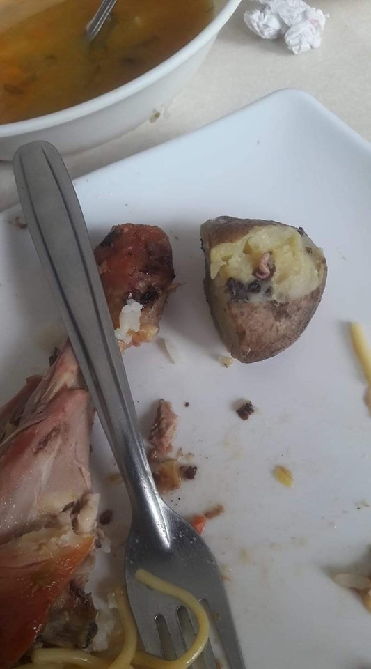 Una experiencia desagradable vivió una estudiante de la Universidad Surcolombiana en Neiva. Tania Lamus denunció mediante redes sociales haber encontrado hasta 5 gusanos al interior de una papa que formaba parte de su almuerzo.