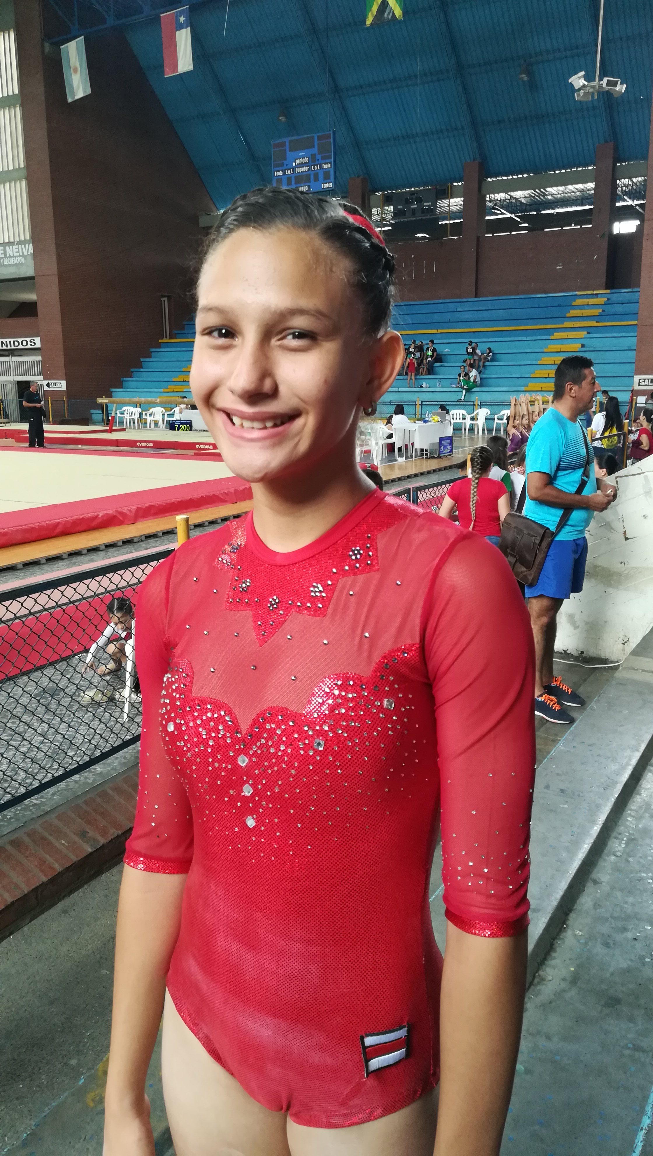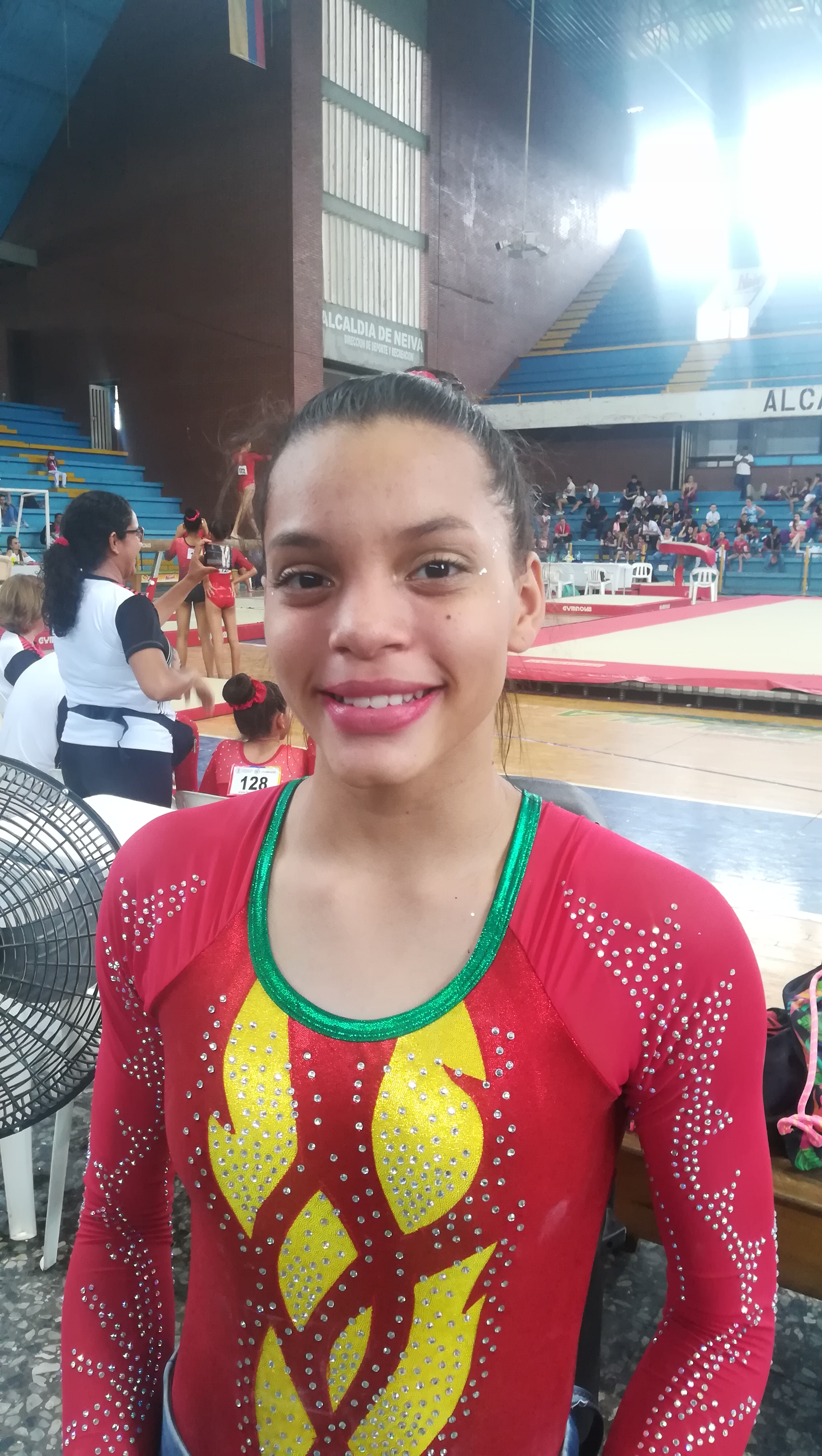 Mariana Castaño Zapata, gimnasta de Medellín: “Tengo trece años de edad, he venido entrenando bastantes años desde los cuatro años, me ha ido súper bien. Los escenarios que montaron para la competencia en Neiva me parecieron súper bien, la atención estuvo súper, me sentí muy bien”.