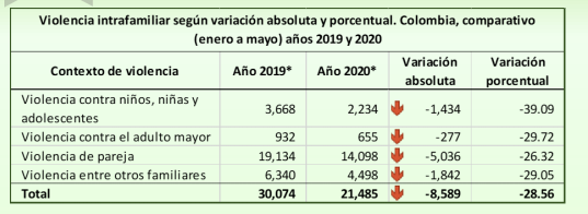 De acuerdo con los datos suministrados por el Instituto Nacional de Medicina Legal y Ciencia Forenses de enero a mayo de 2020, se presentaron 14.098 casos de violencia de pareja a nivel nacional, de los cuales 12.071 corresponden a mujeres y 2.027 a hombres.