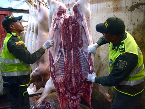 3.000 kilogramos de carne bovina y porcina procedente de mataderos ilegales de Huila, Bogotá y Meta fueron decomisados en operativos adelantados por Instituto Nacional de Vigilancia de Medicamentos y Alimentos, con el apoyo de la Policía Nacional.