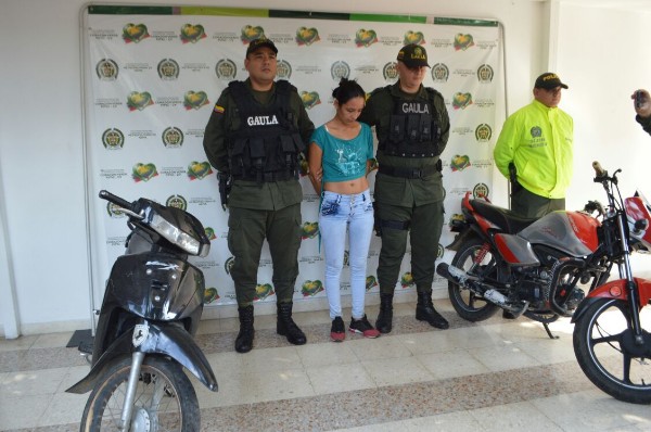 Según las autoridades, la capturada integraba una banda delincuencial que hurta motocicletas y luego les exigen a las víctimas dinero para devolverlas.