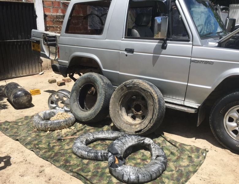 El cargamento de estupefacientes, fue encontrado camuflado en las llantas de un vehículo particular que se desplazaba por la vía al municipio de Suaza.