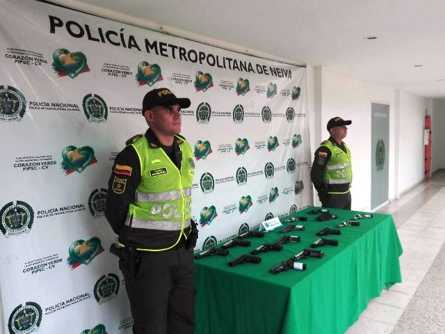 En una acción policial realizada por miembros de la Policía Metropolitana de Neiva, se logró incautar y sacar de circulación de las calles de la ciudad, un total de 16 armas de fogueo y neumáticas.