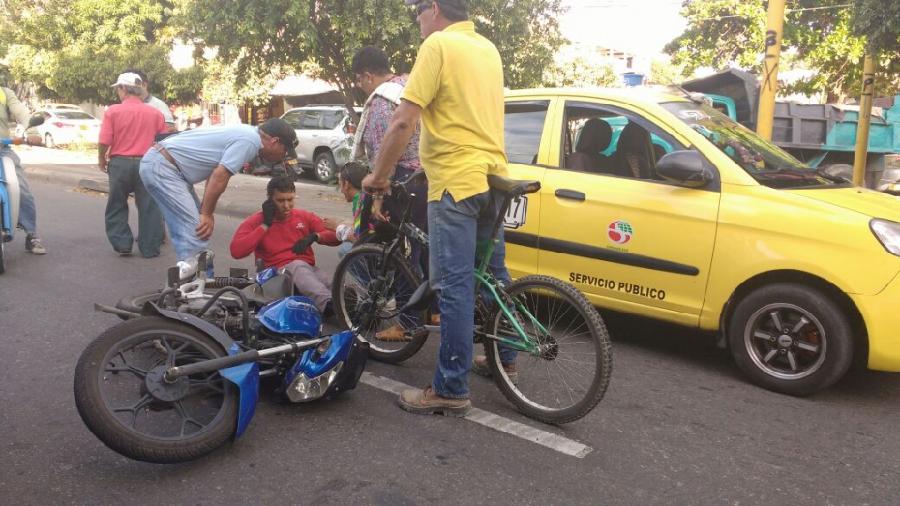 Un accidente de tránsito en el que estuvieron implicados un taxi y una moto se presentó sobre las 4:20 p.m. del día de ayer en la Calle Octava con Carrera 18, intersección en inmediaciones del barrio Calixto Leyva.