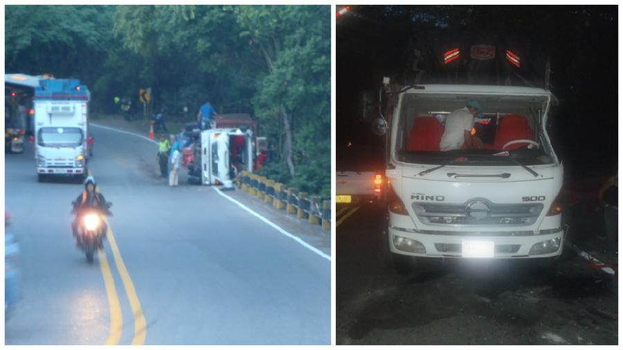 La alta velocidad con la que venía Hernando Betancur, un conductor de 67 años de edad en su camión de carga hizo que al dar la curva en la carretera la carga hiciera mello para que el automotor se volcara. Por fortuna no hubo heridos, pero si ocasionó traumatismos en la movilidad vehicular.