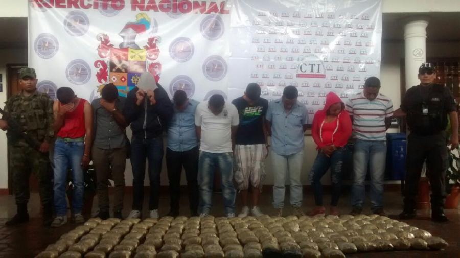 Labores de investigación, inteligencia y seguimiento, condujeron a tropas del Batallón Especial Energético y Vial No. 12 y unidades del Cuerpo Técnico de Investigación, CTI, a realizar un allanamiento, logrando, no sólo la incautación de más de 154 kilos de al parecer diferentes sustancias ilícitas, sino además la desarticulación de la banda encargada del tráfico de los estupefacientes.