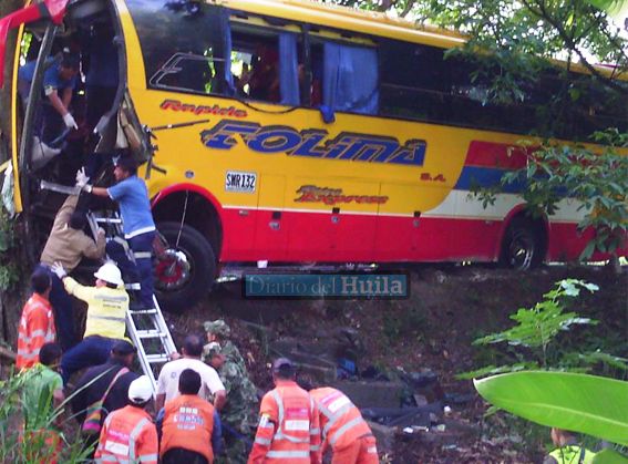 Un muerto y trece personas heridas es el saldo del accidente de un bus de Rápido Tolima que salió de Neiva hacia Bucaramanga el pasado martes en la noche. El percance se presentó en la madrugada de ayer y según indagaciones preliminares, el hijo de la víctima mortal era quien conducía al momento del choque.