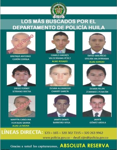 Las autoridades desarticularon una organización delincuencial denominada Los Gavilleros por el delito de hurto calificado agravado, bajo la modalidad de hurto a personas, con la captura de tres de sus presuntos miembros en Neiva, Garzón y Altamira (Huila), de manera simultánea.