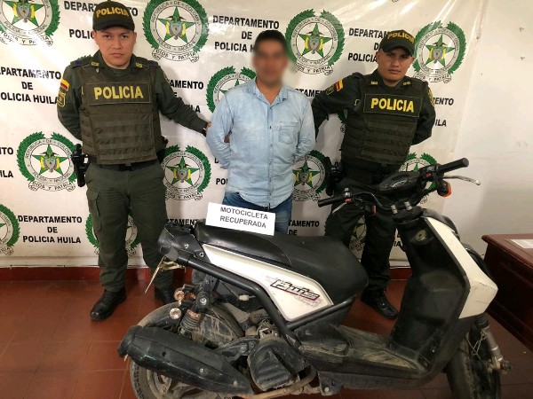 Los hechos sucedieron en el municipio de Hobo, donde se llevó a cabo la captura de un joven que minutos antes bajo el factor oportunidad, se hurto una motocicleta.