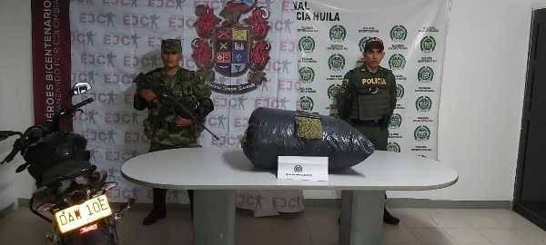 En registro continuo de vehículos que transitan por carreteras del sur del Huila, se encontraron 53 kilos de marihuana en dos costales, distribuidos en 100 paquetes dentro del maletero del bus.
