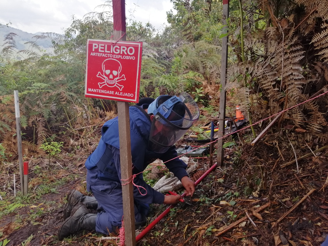 “Esto es un trabajo importante que está haciendo nuestro Batallón de Desminado Humanitario y que nos está permitiendo devolverles la tranquilidad a los sectores que históricamente se han visto afectados por la siembra indiscriminada de minas antipersonales y diferentes artefactos explosivos”.