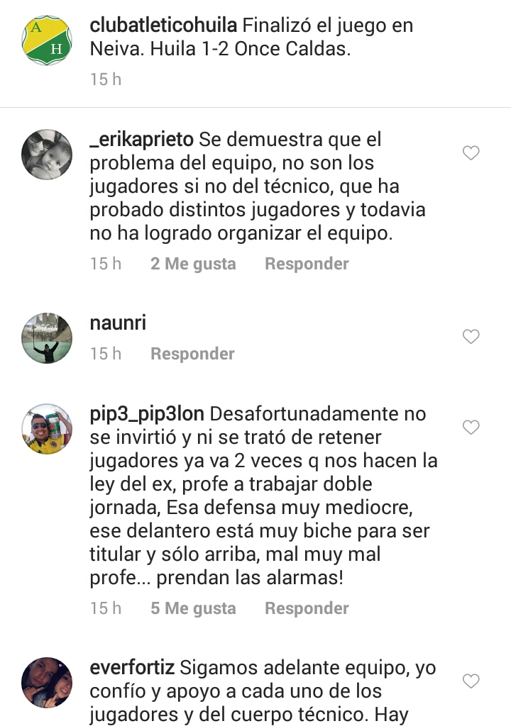 Tras la derrota de ayer por 1-2 ante Once Caldas en el Estadio Guillermo Plazas Alcid de Neiva, ya van 5 fechas disputadas de la Liga Águila que el Atletico Huila ha sido incapaz de cosechar una victoria. Y la afición ha explotado contra el equipo por las redes sociales, culpando más que todo al DT y los directivos por no gestionar de manera eficiente el tema de los fichajes.