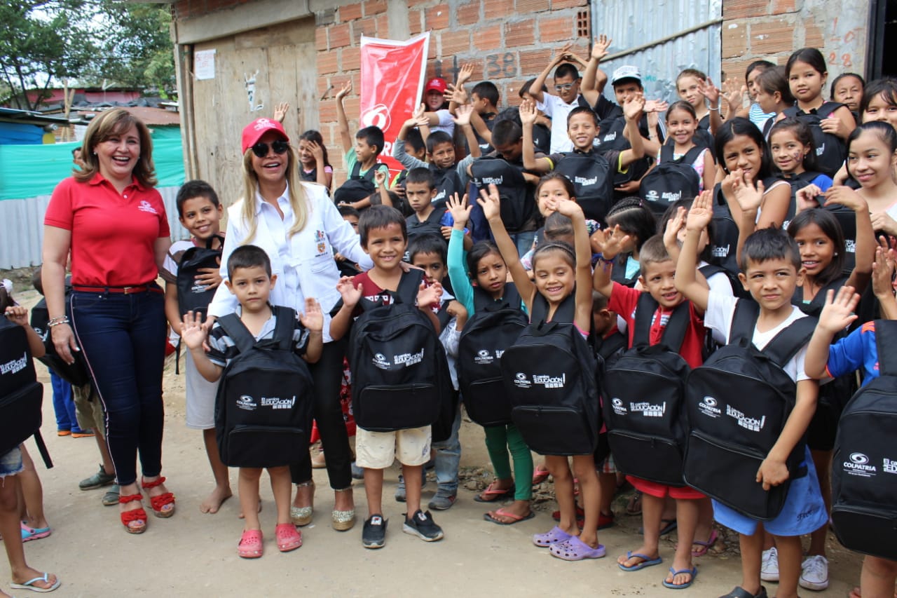La Gestora Social del Departamento estuvo acompañada por la gerente de Colpatria sede Neiva, Elsa Collazos, quien se sumó a esta campaña con el aporte de útiles escolares.