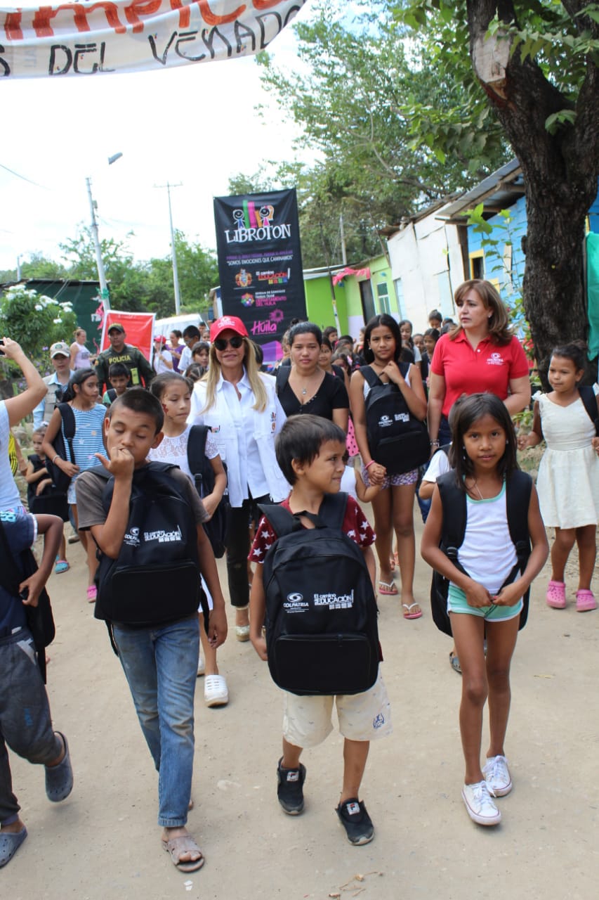 En esta oportunidad, el asentamiento fue el escenario para una jornada más del programa Librotón en el que se dota a los estudiantes de las zonas más vulnerables de útiles y materiales educativos que permitan mejorar sus procesos de aprendizaje.
