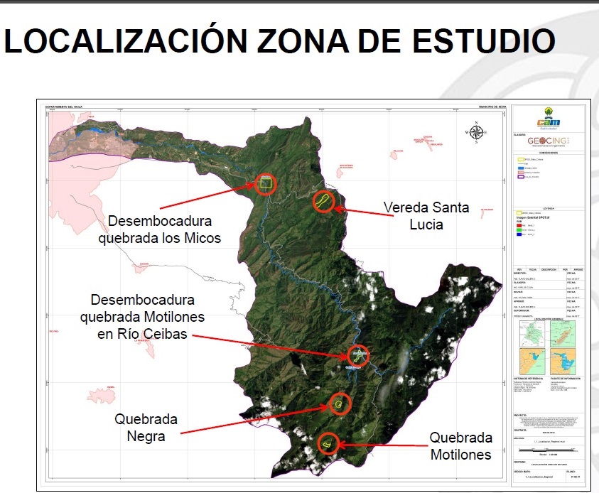Este estudio se realizó bajo el componente de gestión de riesgo del Plan de Ordenación y Manejo de la Cuenca Hidrográfica del río Las Ceibas-POMCA, el cual tenía como objetivo elaborar estudios de Amenaza, Vulnerabilidad y Riesgo por fenómenos de remoción en masa, inundaciones y avenidas torrenciales en la micro cuenca de la quebrada Motilón y en la vereda Santa Lucia sobre la microcuenca de la quebrada los Micos, tributarios del rio de las Ceibas.