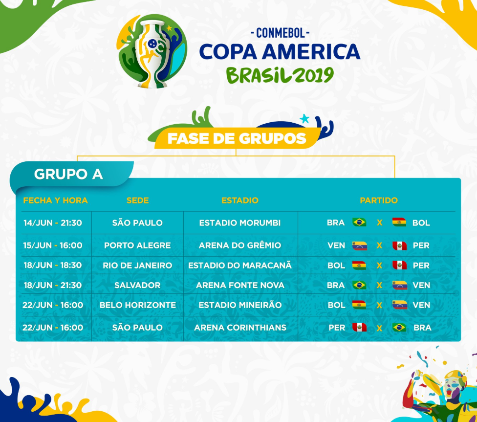 Cabe señalar que esta es la quinta Copa América cuyo organizador es Brasil, máxima campeona del mundo (5 títulos en la historia).