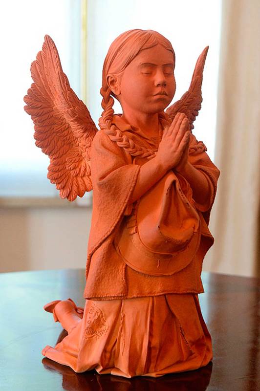La Niña Ángel o María en Paz, es un trabajo de Javier Sierra, artesano de Boyacá conocido como “Javier de Ráquira” y se entregará al Papa Francisco en nombre de todos los artesanos de ese municipio famoso por sus artesanías de barro cocido. Se elaboró en arcilla a mano durante dos meses y tiene una altura de 50 centímetros.