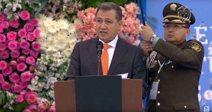 "El expresidente Juan Manuel Santos, desde finales de 2010, abandonó la política de Seguridad Democrática y hoy entrega el país inmerso en una nueva guerra que a la fecha deja más de 300 dirigentes cívicos y comunales asesinados, solamente en los 2 últimos años. Hoy, presidente Duque, recibe Usted un país, atemorizado porque regresaron los crímenes a uniformados de la Fuerza Pública, reaparecieron los secuestros, y creció la extorsión, la cual aumentó solo en el año 2017, en el 295%, frente al año 2010", señaló Macías.