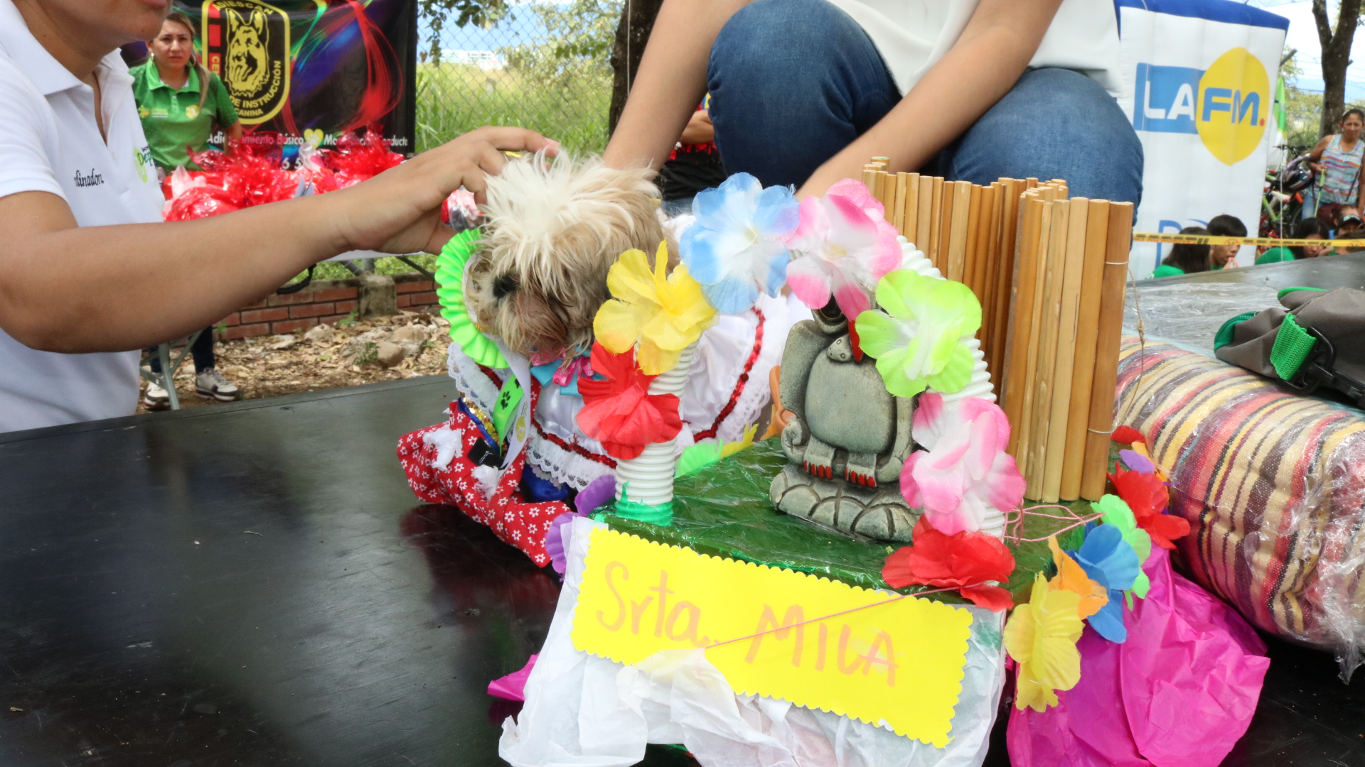 El premio al primer lugar en peluditos se lo llevó Kira, una perrita de raza pincher que con mucha ternura estaba acompañada de una carroza que tenía adornos con flores y varios instrumentos típicos de la rajaleña; en raza mediana el gran campeón fue Konan de raza Buldog quien con alpargatas, sombrero, pechera y hasta machete cautivó a los presentes y al jurado calificador y en la categoría mascota grande el ganador fue un Zamoyedo de color blanco llamado Sam quien con su porte y glamur en el escenario se llevó los aplausos.