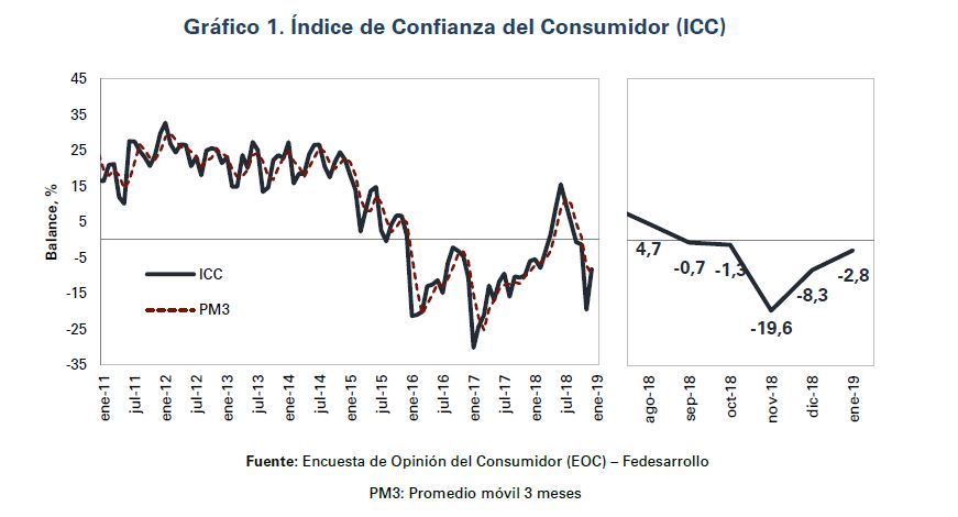 De acuerdo con Mejía el incremento frente a diciembre de 2018 obedeció a una recuperación en el Índice de Expectativas del Consumidor, mientras que el Índice de Condiciones Económicas se deterioró.