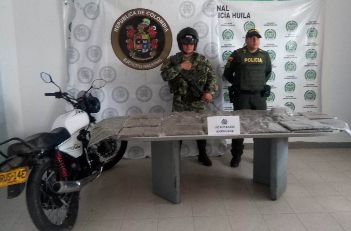 En el sector de la vereda Panorama del municipio de La Plata, el sujeto al sentir la cercanía de los soldados, abandonó la motocicleta y el bolso que llevaba en la espalda para huir por la ribera de la quebrada.