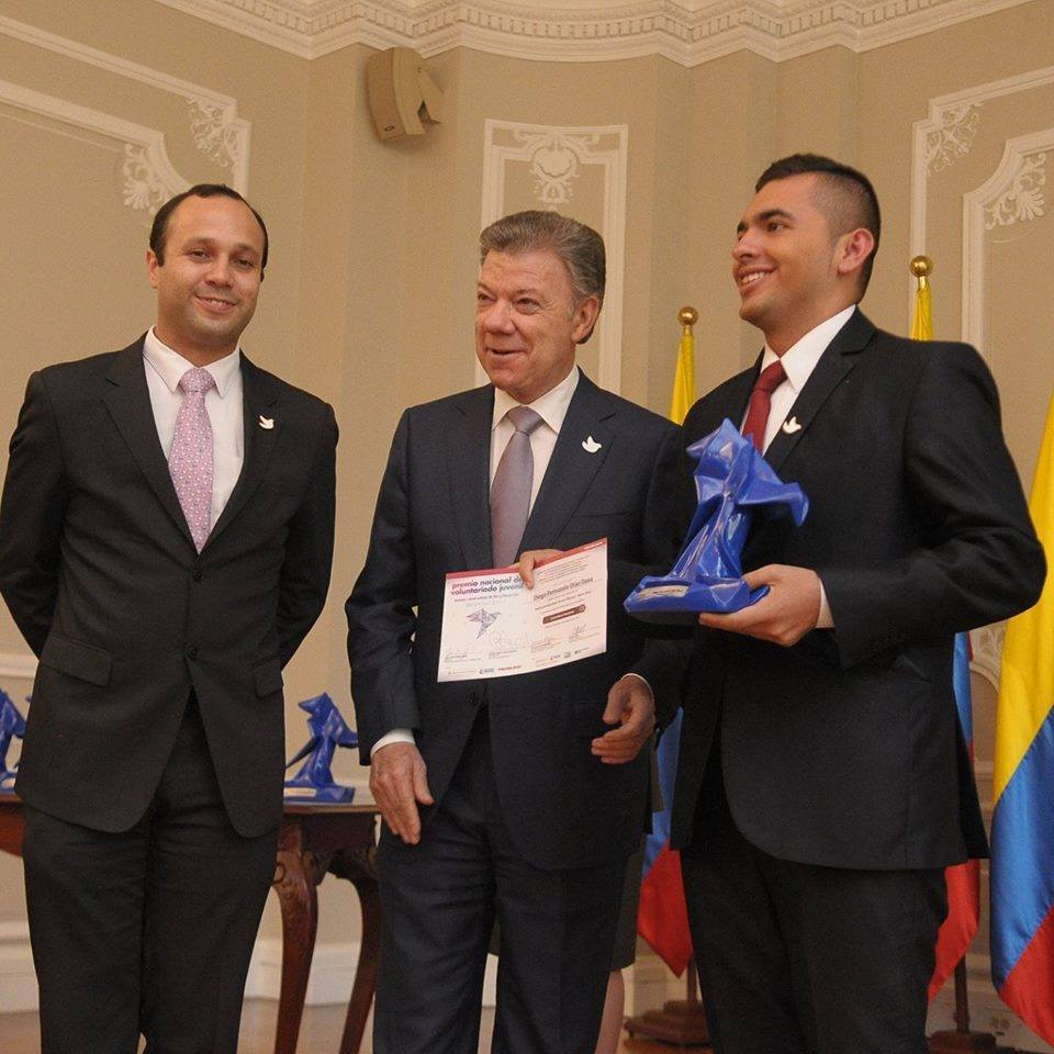 De la mano del Presidente de la República, Diego Fernando Díaz Dasa recibió el galardón durante la quinta entrega del Premio Nacional de Voluntariado Juvenil.