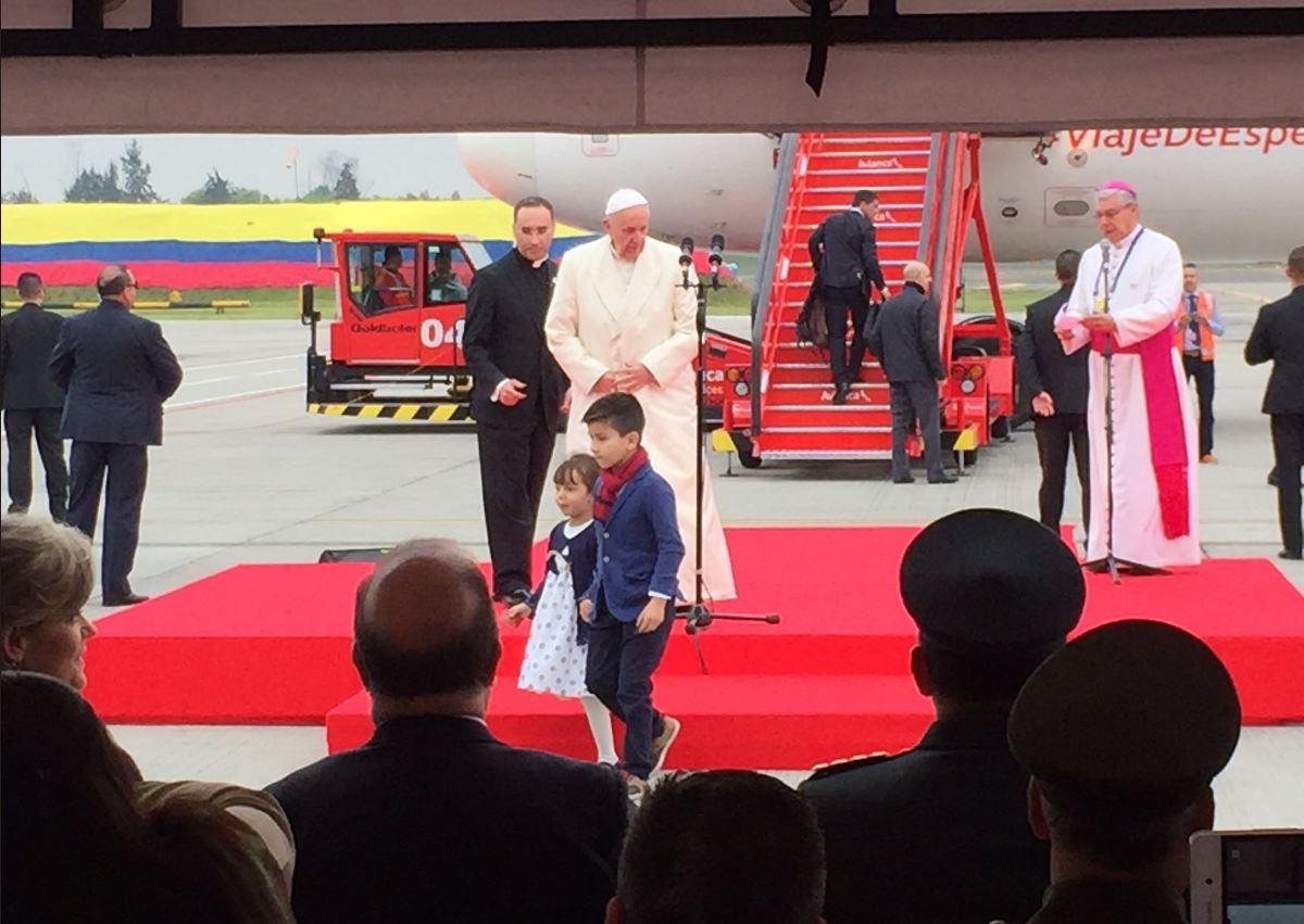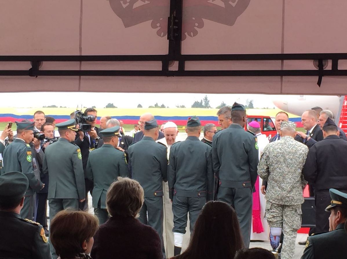 Minutos antes de viajar hacia la ciudad de Villavicencio, su santidad realizó un reconocimiento por el sacrificio que han hecho en la búsqueda de la paz.
