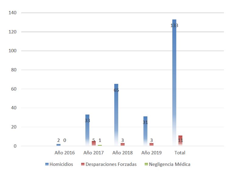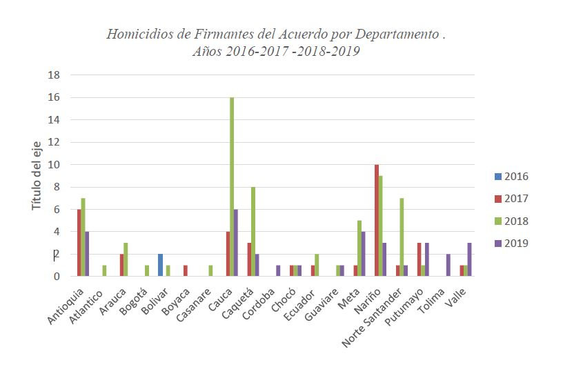 Entre el 1 de noviembre de 2016, fecha de la primera firma del Acuerdo de Paz, al 20 de junio de 2019 se han cometido 133 muertes violentas contra firmantes del acuerdo en proceso reincorporación y 11 desapariciones forzadas. Y los responsables de perpetrar los crímenes serían el Estado, Paramilitares, ELN, GAOR, Disidencias y grupos armados no identificados.