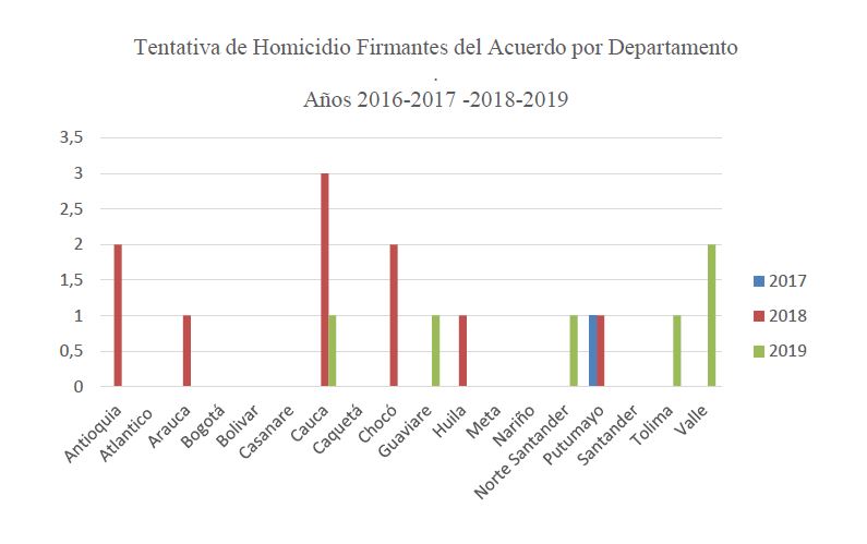 A nivel general se han presentado al menos 161 hechos de violencia (homicidios, tentativas de homicidios y desapariciones forzadas) contra ex integrantes de las FARC-EP, firmantes del acuerdo en proceso de reincorporación.