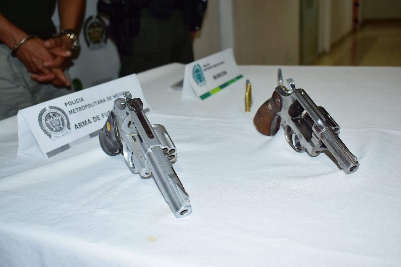 Durante los hechos la pareja intentó huir del puesto de control, por lo que los uniformados de inmediato emprendieron la persecución, logrando minutos después la captura de los dos delincuentes, a quienes se les halló en su poder las armas de fuego con municiones.