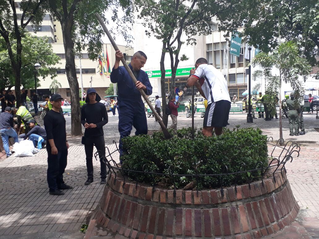 Luego de las denuncias hechas sobre el mal estado del Parque Santander, comunidad en general inició ayer desde las 6:30 a.m., la jornada de limpieza y ornato que busca recuperar la imagen del lugar.