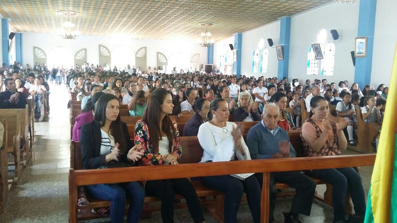 Previo a la iniciación del acto en la iglesia del centro poblado se llevó a cabo una misa concelebrada por tres párrocos de Acevedo, entre ellos el sacerdote Héctor Trujillo, donde se oró por el descanso eterno de las víctimas del conflicto armado en Colombia, especialmente las de San Adolfo.