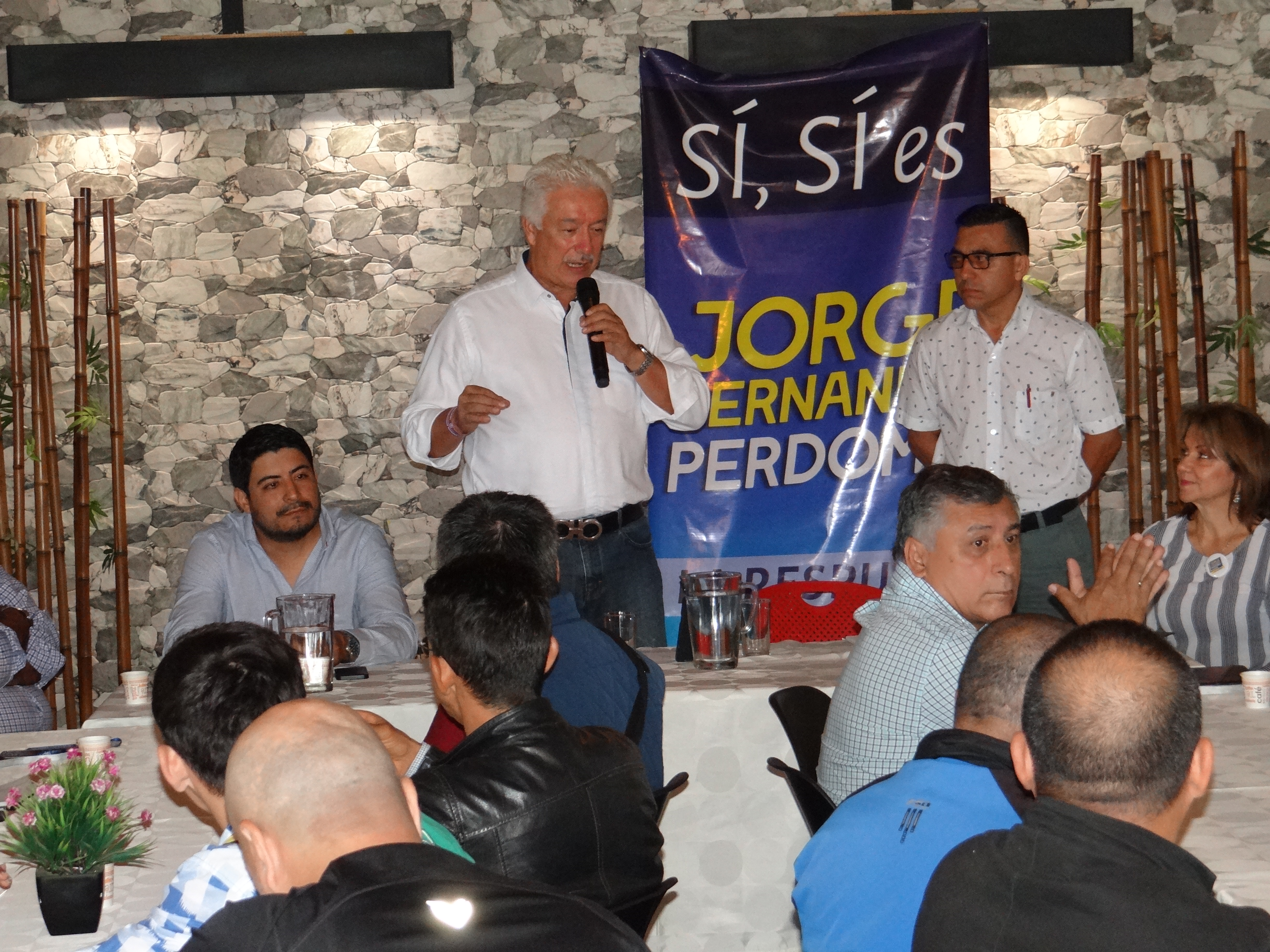 Una multitudinaria reunión presidió ayer en Neiva el precandidato conservador, Jorge Fernando Perdomo, con cerca de 500 personas y dirigentes que llegaron del occidente del departamento para manifestar su apoyo al ex presidente de la Dimayor.