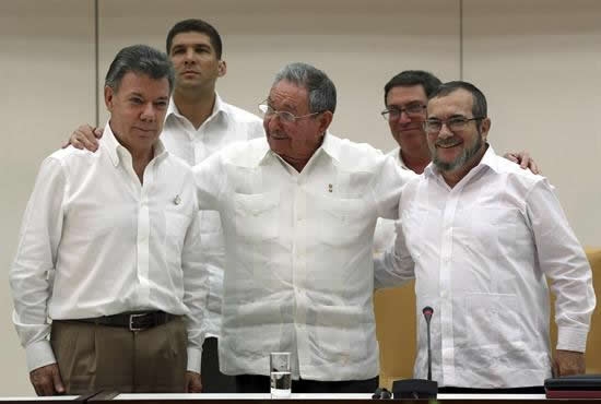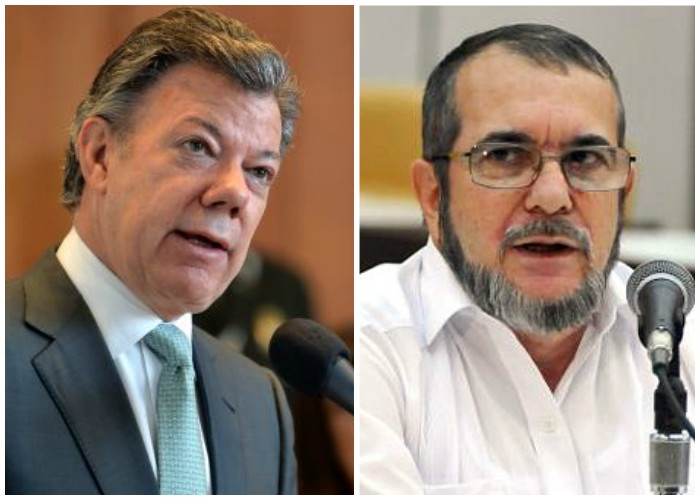 Timoleón Jiménez, "Timochenko", líder de la guerrilla de las FARC – EP desde 2011, encabezó junto con Santos el acto de firma del acuerdo en La Habana.