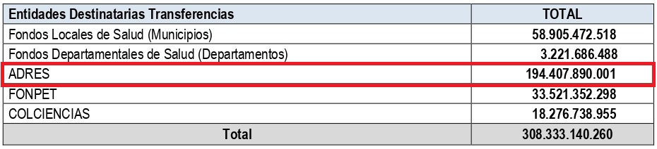 Más de $195.000 millones dejaron de recibir los departamentos de Colombia, durante el primer trimestre de 2019, para atender la salud de sus habitantes porque fueron girados a una entidad denominada ADRES (Administradora de los Recursos del Sistema General de Seguridad Social en Salud) creada a finales de 2017 por el entonces presidente Juan Manuel Santos Calderón.