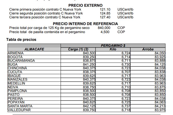 El precio interno del café se encuentra en el nivel más alto en lo que va corrido de 2018, llegando a los $840.000 la carga, superior al promedio de los años 2016 y 2017, sostuvo el Gobierno en un comunicado.