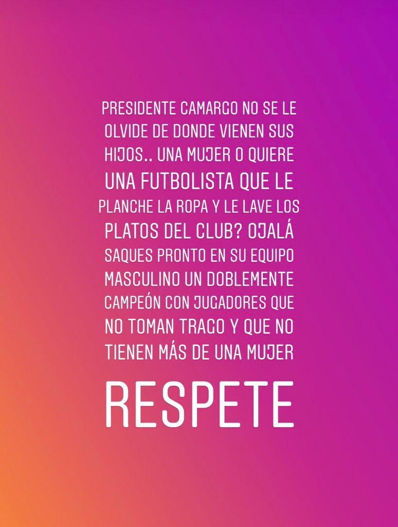 Tras las polémicas declaraciones, Yoreli Rincón, también jugadora de la Selección Colombia, publicó un mensaje en su Instagram en el que se mostró molesta por las palabras de Camargo.
