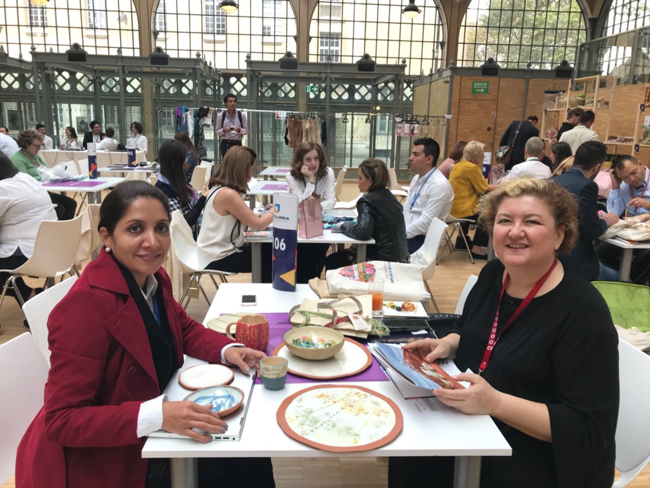 Por parte del Huila, Laly Zulena Cuellar Durán una empresaria del municipio de Campoalegre participa en el encuentro con su proyecto Patio de la Cerámica, el evento se desarrolla en acarrear du Temple.