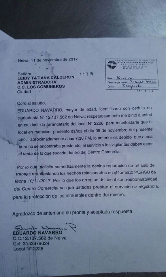 DIARIO DEL HUILA diálogo con el señor Eduardo Navarro, para conocer sus percepciones acerca de las denuncias y saber qué ha hecho al respecto.