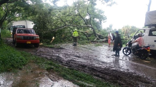 Como consecuencia de las fuertes lluvias que se han presentado en la mañana de hoy miércoles, un frondoso árbol cayó sobre la vía nacional, en el sector de la vereda El Viso, municipio de Campoalegre.