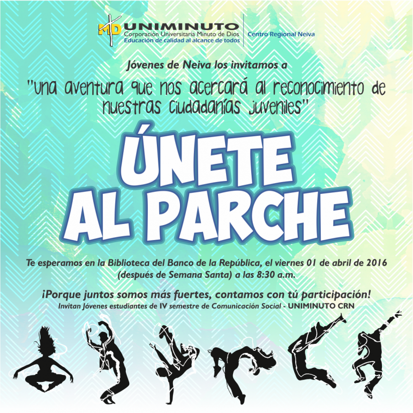 Con el propósito de generar un espacio de diálogo juvenil para el auto reconocimiento como actores sociopolíticos y su importancia en el desarrollo del territorio Huilense, estudiantes de IV semestre de Comunicación Social de la universidad Minuto de Dios, Uniminuto, realizarán un simposio sobre “ciudadanías juveniles”.