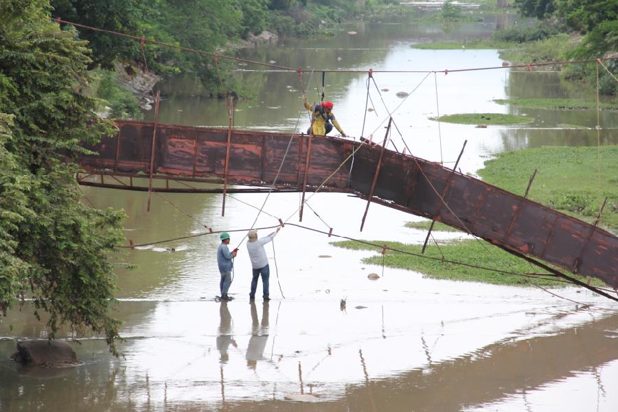 Por presentar alto riesgo para los habitantes del barrio San Martín, fue desmontado el puente colgante, decisión analizada por el Consejo Municipal de Gestión del Riesgo. El puente no será reemplazado.