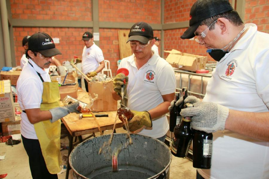 Un total de 16 mil botellas de licor adulterado y de contrabando fueron destruidas por las autoridades, en conjunto con la Secretaría de Hacienda del Huila. Las botellas habían sido incautadas en los años 2013 y 2014 por las distintas autoridades en el departamento.