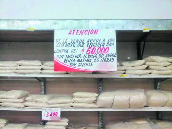 La Capital Diocesana del Huila sufre por estos días insuficiencia de arroz, situación que han aprovechado los dueños de los locales comerciales que venden a altos precios la libra del cereal (2000 pesos), incluso uno de ellos condiciona la venta del producto a la compra de $50.000 en otros elementos. El acetaminofén y los repelentes también son escasos debido a la compra masiva por el virus del chikunguña.